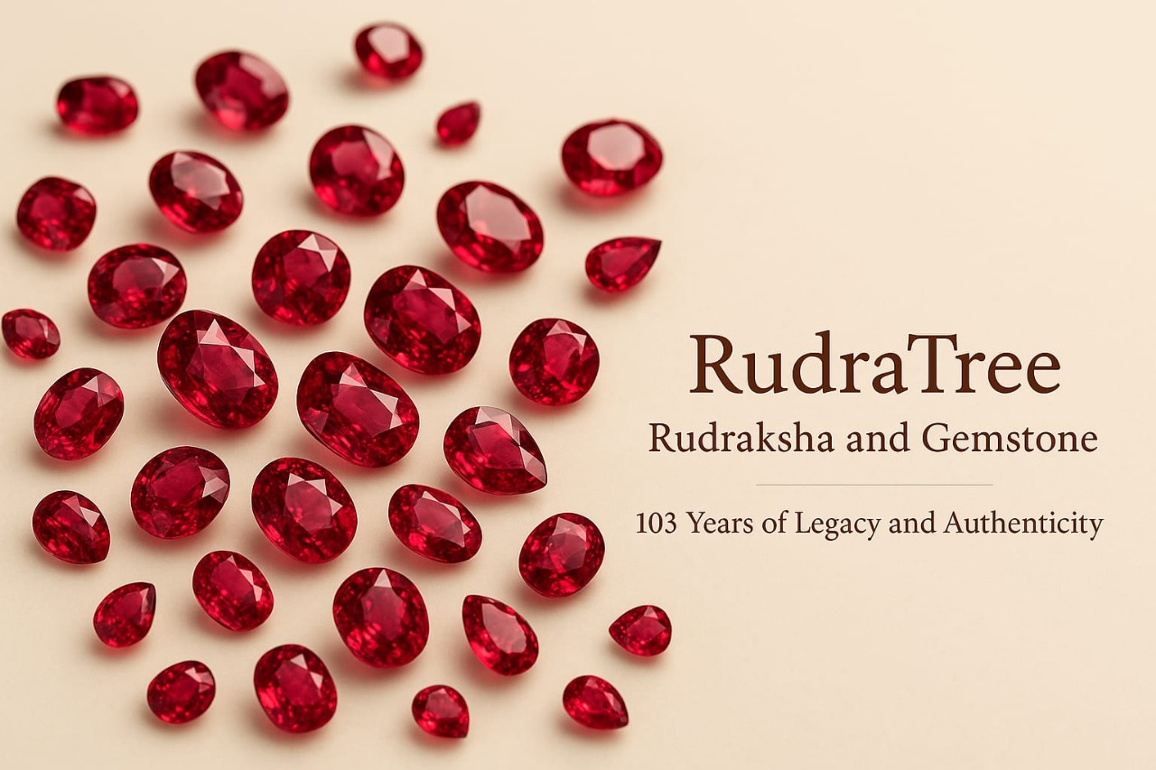 Established in 1923, Rudratree Rudraksha and Gemstones stands as a proud symbol of legacy, purity, and authenticity. With over 103 years of heritage, we are India’s most trusted name in the world of spiritual and Vedic gemstones. Among our most prized offerings is the magnificent Ruby – a gemstone celebrated for its energy, elegance, and astrological strength.