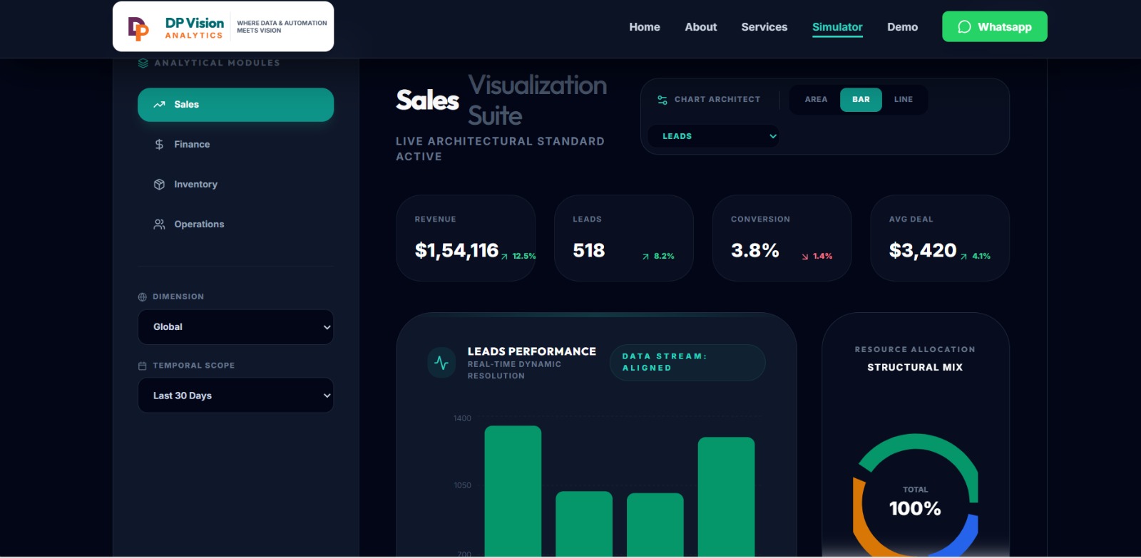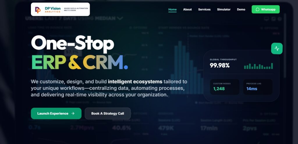 DPVision Analytics specializes in Artificial Intelligence (AI), Machine Learning (ML), Data Analytics, and Data Science, helping enterprises transform complex datasets into clear, actionable intelligence. Beyond advanced analytics, the company designs and deploys customized ERP, CRM, and SaaS-based platforms that optimize workflows, enhance organizational efficiency, and reduce operational friction.